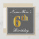 Elegant, Gray, Faux Gold 6th Birthday; Custom Name Invitation