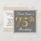 Elegant, Gray, Faux Gold 75th Birthday + Name Invitation