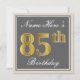 Elegant, Gray, Faux Gold 85th Birthday + Name Invitation