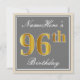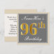 Elegant, Gray, Faux Gold 96th Birthday + Name Invitation
