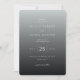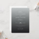 This elegant wedding invitation features a minimalist design with a gradient gray background that transitions from light to dark. The clean serif typography adds a classic touch, while the centered layout ensures clarity and sophistication. Perfect for formal celebrations, this invitation conveys a timeless mood with its refined simplicity and ample negative space. Customizable elements allow you to personalize it effortlessly, making it ideal for your special day.