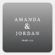 This wedding sticker features a minimalist design with a gradient gray background, transitioning from light to dark. The layout is clean and balanced, showcasing two names in elegant serif typography connected by an ampersand, followed by a simple "thank you" in a contrasting sans-serif font. The grayscale color palette adds sophistication, making it perfect for expressing gratitude at weddings or other formal events. Its modern style conveys a mood of elegance and formality, ideal for those seeking a refined aesthetic.