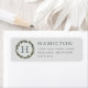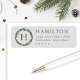A lush watercolor pine wreath frames a graceful monogram initial on this elegant return address label. Soft gray green tones and refined serif typography give the design a timeless, nature-inspired feel. Personalize with your monogram, family name, and address for everyday or holiday mailings. A sophisticated finish for every envelope.