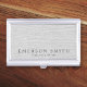 Elegant business card holder featuring your name and title on a printed light gray linen fabric background
