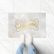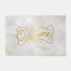 Elegant Gray Marble and Gold Script Welcome Doormat
