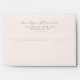 This wedding envelope features a minimalist and elegant design with a clean, white background. The layout includes a stylish cursive script for names at the top, followed by structured address details in a modern sans-serif font. The monochromatic color palette of soft grays adds sophistication without distraction, creating an understated yet refined look perfect for formal correspondence. Ideal for weddings, this envelope combines simplicity with a touch of luxury, making it a timeless choice for your special day.