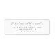 This return address label features a minimalist and elegant design, perfect for formal occasions. The layout is clean and centered, with an upper script font adding a personal touch, while the lower serif font provides clear, readable information. Rendered in soft charcoal gray on a white background, it exudes sophistication and timelessness. Ideal for weddings or formal announcements, this label combines simplicity with refined style to make your stationery stand out.