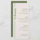 A simple and modern gray and olive green wedding menu, with simple and script lettering, and a floral element at the back. Personalize with your wedding menu items, and your names and wedding date at the bottom of the card.