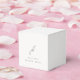 Elegant wedding favor box featuring a classic design with your monogram in a script font along with your event details in a traditional serif font.