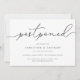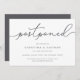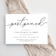 Need to postpone your wedding or change the date? Let guests know with these simple and elegant wedding postponement announcement cards. Chic gray and white design features "postponed" at the top in hand lettered calligraphy script, with your names and new date beneath. Adjust the wording and level of detail as needed. As shown, sample text directs guests to your wedding website for additional information.