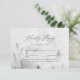 Elegant, winter RSVP wedding card featuring misty gray watercolor pine trees and mountains. Personalize the winter pine tree wedding RSVP cards by adding your RSVP date, custom accepts/declines wording, and dinner options. The wedding meal choice RSVP card reverses to a charcoal gray watercolor background. Designed to coordinate with our Elegant Winter Forest wedding collection.