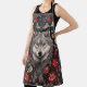Elegant Gray Wolf Floral Apron