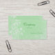 This lovely business card template has a light green weathered background, with white floral design running up the left side. Customize with your information on the front and back to suit your needs. Change text style, color, size, and even add more text fields if you need.