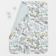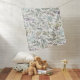 An elegant botanical watercolor in soft shades of green and blue. The reverse of the baby blanket is a light teal shade.