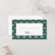 This elegant wedding place card features a sophisticated botanical design with lush green foliage set against a dark teal background, creating an inviting and natural ambiance. The clean white center provides a perfect space for customization, while the cursive typography adds a touch of refined charm. Ideal for a garden or outdoor wedding, this design evokes a serene and romantic mood, enhancing any celebration's aesthetic appeal.