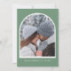 This customizable arch Save the Date features a stylish winter in elegant green tones, paired with a modern calendar layout. Couples can personalize the design by adding their own photo and adjusting the circle graphic to highlight their wedding date. A perfect blend of personal and seasonal charm, ideal for announcing your winter wedding in a memorable way. This save the date card is a part of a winter holiday collection with coordinating items available. We encourage you to explore the full set to create a perfectly matched party celebration.