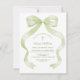Elegant Green Bow Baptism Invitation