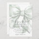 This Girly and Cute Coquette Style Bridal Shower Invitation features an oversized sage green bow that steals the spotlight, covering almost the entire design. The soft green bow adds a playful yet elegant touch, paired with the phrase "She's tying the knot!" in a chic combination of black handwritten script and classic serif fonts.