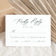 Simple wedding RSVP card featuring a modern green calligraphy script with a white background (or color of your choice). Personalize the forest green RSVP card with your desired response date, custom accepts/declines wording, and meal options. The calligraphy meal choice RSVP card was designed to coordinate with our Elegant Calligraphy wedding collection.