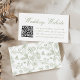 Make it easy for guests to find more information about your wedding and RSVP online with these elegant wedding website cards with a QR code. The wedding enclosure cards feature "Wedding Website" displayed in a sage green calligraphy script with a white background. Personalize the card with your wedding website address and instructions for guests using the text templates provided. The back of the wedding website card features a sage green Chinoiserie-inspired floral pattern.