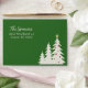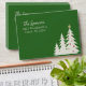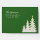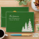 Your personalized return address, “The Spencers, 2222 Woodland Ln, Forest, NC 22121,” appears gracefully in white script at the top left, perfectly complementing the festive tree silhouettes below. This timeless envelope design balances luxury and simplicity — ideal for Christmas cards, invitations, and heartfelt winter letters.
