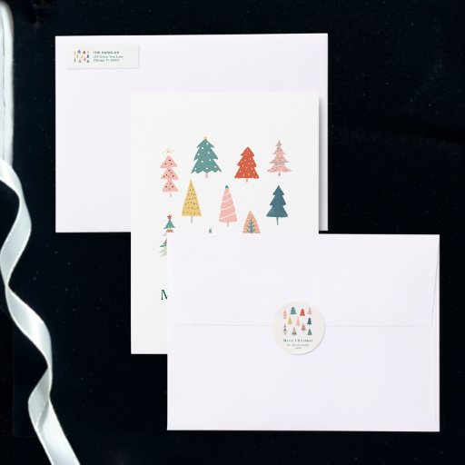 This chic and elegant green holiday return address label features a modern set of Christmas trees. The stylish text can be completely personalized with your family name and address. Spread joy and warmth this holiday season with our beautifully designed set of Christmas trees return address label. It is perfect for sending your love to friends and family. Happy Holidays!