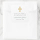 Elegant Green Cross Boy First Communion Thank You Square Sticker
