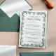 The card's design is both sophisticated and simple, with a detailed green border line that adds an elegant frame to the message within. This subtle yet beautiful pattern doesn’t overpower the essential information but rather enhances the overall look and feel of the announcement. The central area is reserved for your personalized message, clearly printed in an easy-to-read font.