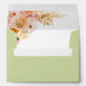 Elegant green envelope with beautiful peach floral detail on the inside. Wedding envelope with design coordinating our "Peach Delight collection" invites. Delight your guest as they open the envelope to find exquisite corner floral design inside, in a beautiful blend of orange, peach, dusty rose, blush, cream and champagne hues. Design with option to add or erase name(s) and address on top back flap. NOTES: 1) the default size A7 fits our 5" x 7" invitation cards, please make sure to select the right size for you before ordering (envelope measurements explanation on product page left bottom area), 2) Option to choose paper type from basic paper or linen. Part of our "Peach Floral Delight and Green" collection with a variety of coordinating products available. Visit the entire extent of this collection at: https://www.zazzle.com/collections/peach_floral_delight_and_green-119552409662994360
