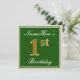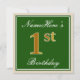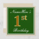 Elegant, Green, Faux Gold 1st Birthday + Name Invitation