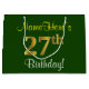 Elegant, Green, Faux Gold 27th Birthday + Name Large Gift Bag