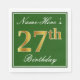 Elegant Green, Faux Gold 27th Birthday + Name Napkins