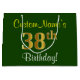 Elegant, Green, Faux Gold 38th Birthday + Name Large Gift Bag