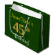 Elegant, Green, Faux Gold 45th Birthday + Name Large Gift Bag