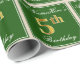 Elegant, Green, Faux Gold 5th Birthday + Name Wrapping Paper