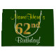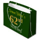Elegant, Green, Faux Gold 62nd Birthday + Name Large Gift Bag