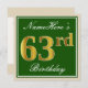 Elegant, Green, Faux Gold 63rd Birthday + Name Invitation