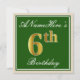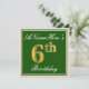 Elegant, Green, Faux Gold 6th Birthday + Name Invitation