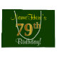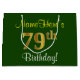 Elegant, Green, Faux Gold 79th Birthday + Name Large Gift Bag