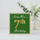 Elegant, Green, Faux Gold 7th Birthday + Name Invitation