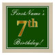 Elegant, Green, Faux Gold 7th Birthday + Name Poster