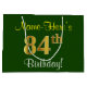 Elegant, Green, Faux Gold 84th Birthday + Name Large Gift Bag