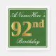 Elegant Green, Faux Gold 92nd Birthday + Name Paper Napkins