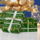 This simple and elegant wrapping paper design features a personalized message like "NameHere’s 92nd Birthday" (with the "92nd" having a faux/imitation gold-like coloring look) within a green-colored square area featuring a simple border outline. The name is in an elegant white-colored script-like text, and can be customized. Wrapping paper like this could perhaps be used when wrapping birthday gifts for somebody who is celebrating their ninety second birthday. [~Z0000219]