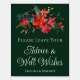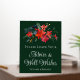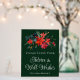 This gorgeous Christmas wedding advice and well wishes sign features a beautiful watercolor of red poinsettia flowers and pine leaves for the holidays. Elegant winter wedding foam board sign in green for a holiday event. Pretty poinsettia floral reception decor.