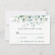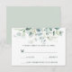 This wedding RSVP card features painted watercolor eucalyptus, botanical green, and light blue leaves.