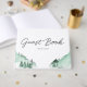 Elegant Green Forest design featuring watercolor mountain and coniferous trees in shades of dusty green perfect for rustic winter or woodland themes and locations.