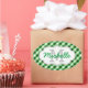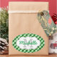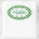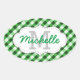 Elegant Green Gingham Pattern Personalized Name Oval Sticker