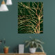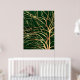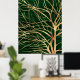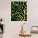 This chic hand-drawn faux shining gold glitter strokes tree shape and abstract emerald green watercolor brushstrokes is ideal for modern, minimalist luxury home decor, or special events, featuring a hand-drawn fall autumn tree silhouette with vibrant forest green, dark green blend watercolor striped wavy painting background.
