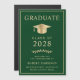 Elegant keepsake green college graduation magnetic announcement featuring a gold graduation cap and modern gold typography for the graduate's name, class year, college or university, degree and major or honors.